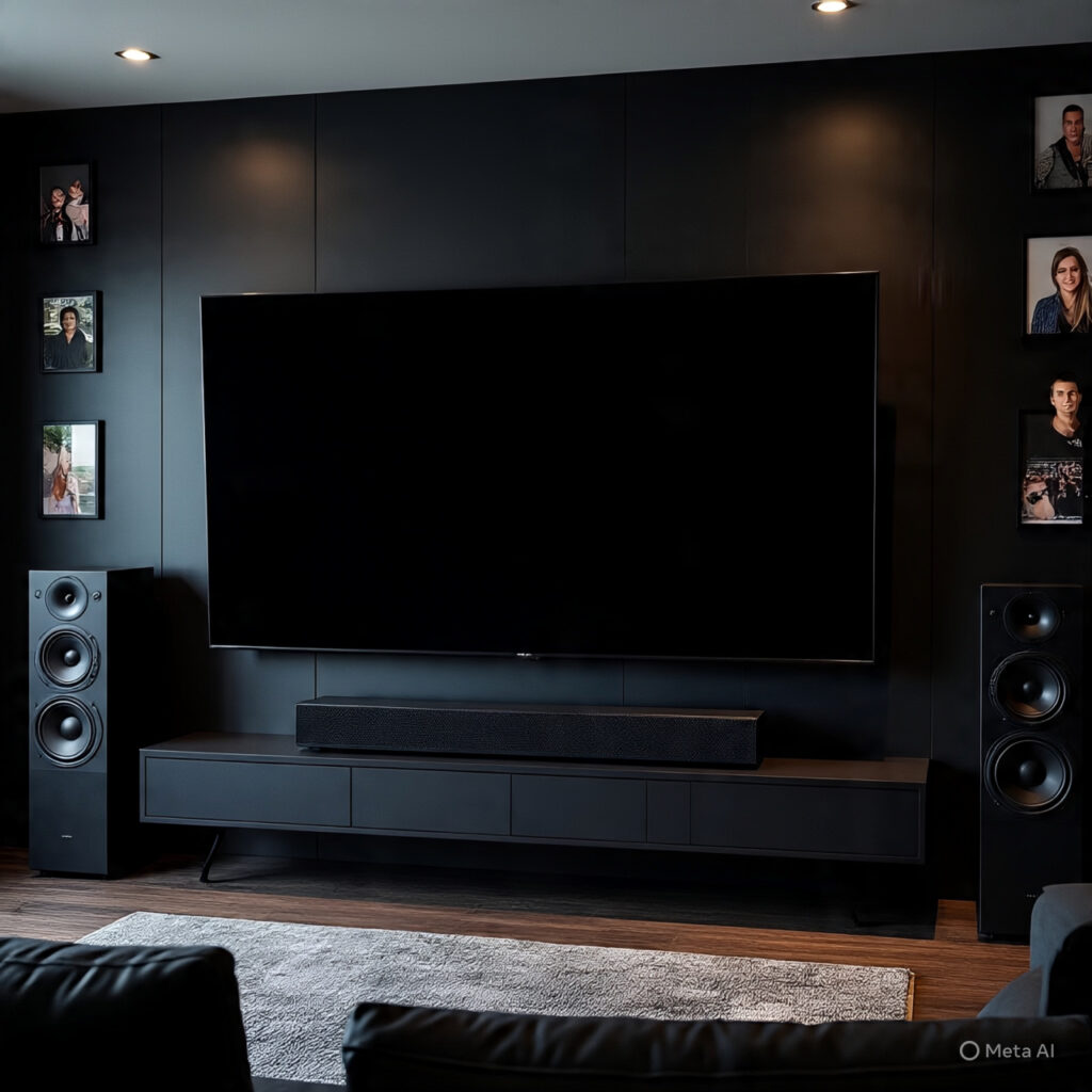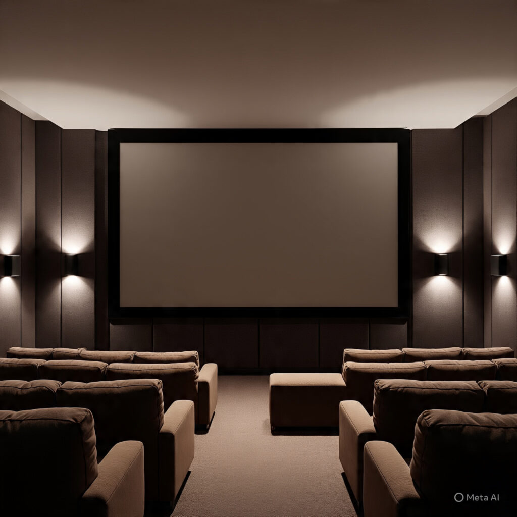 Go all out with a dedicated home theater wall: plush seating, soundproofing, dimmable lights, and a giant screen for the full cinema experience.
