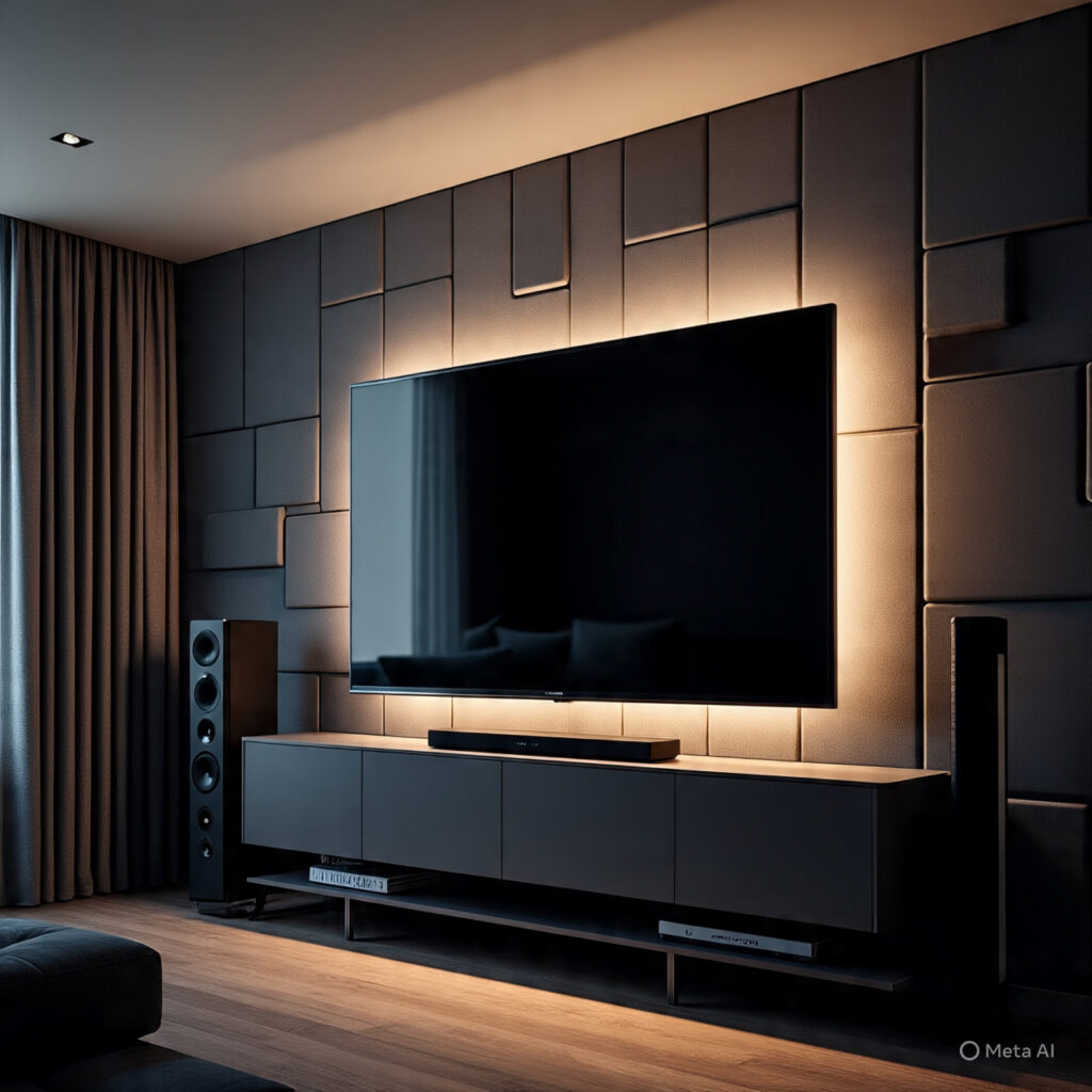 For movie lovers who value sound, an acoustic-panel media wall enhances audio while looking stylish.
