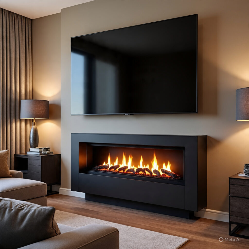 Combine warmth and entertainment by pairing a fireplace with your TV on the same wall. This not only saves space but also makes your living room extra cozy.