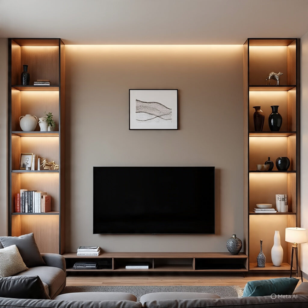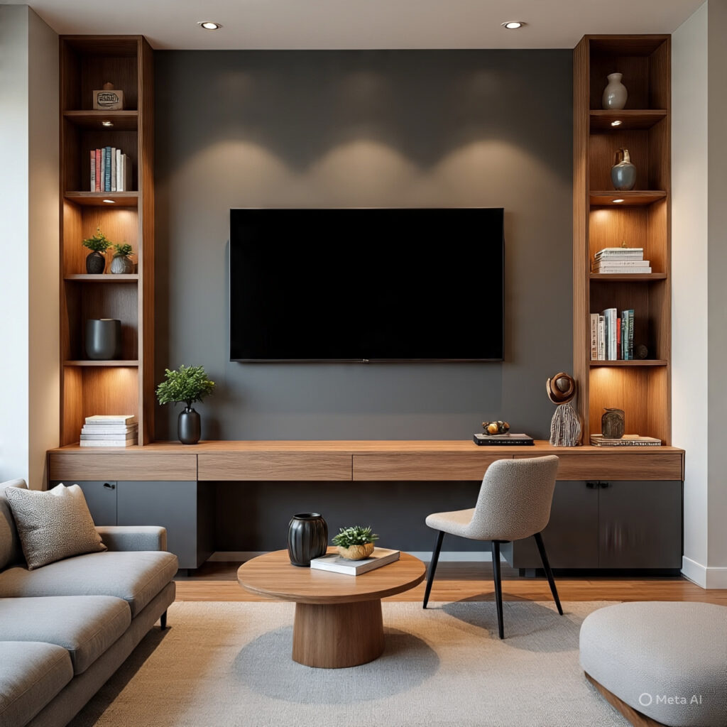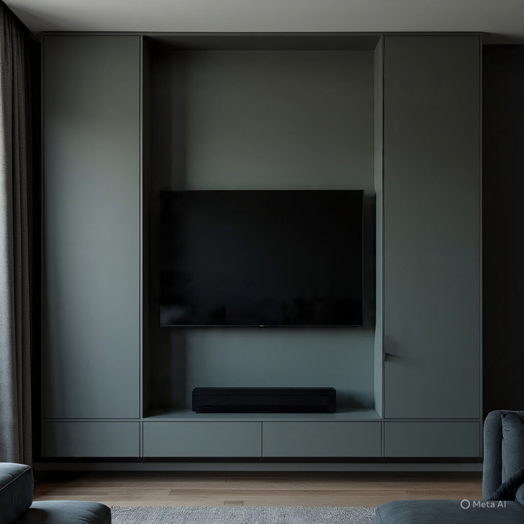 A built-in media wall adds seamless elegance to your living space. With hidden wires, recessed shelving, and a minimalist design, it creates a clean and cinematic look.