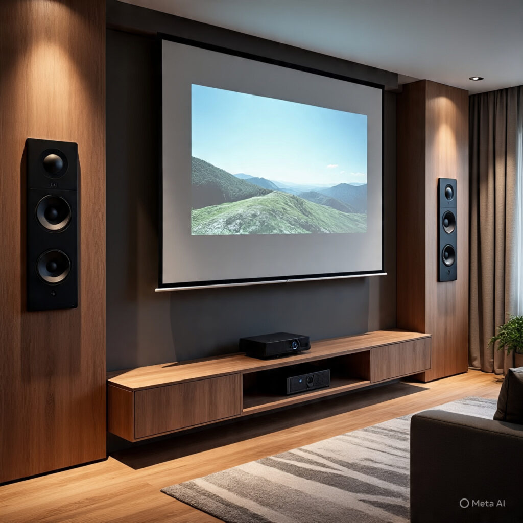 For a true theater feel, consider a hidden projector that drops down when needed. Pair it with a retractable screen for the ultimate media wall.