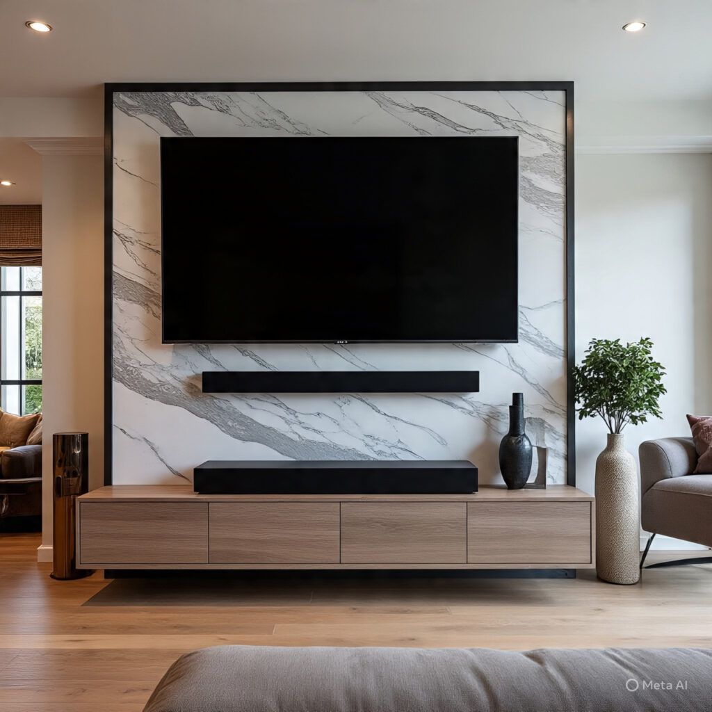 A marble feature wall adds instant luxury. Place your TV in the center, and let the natural stone elevate your media wall into a statement piece.