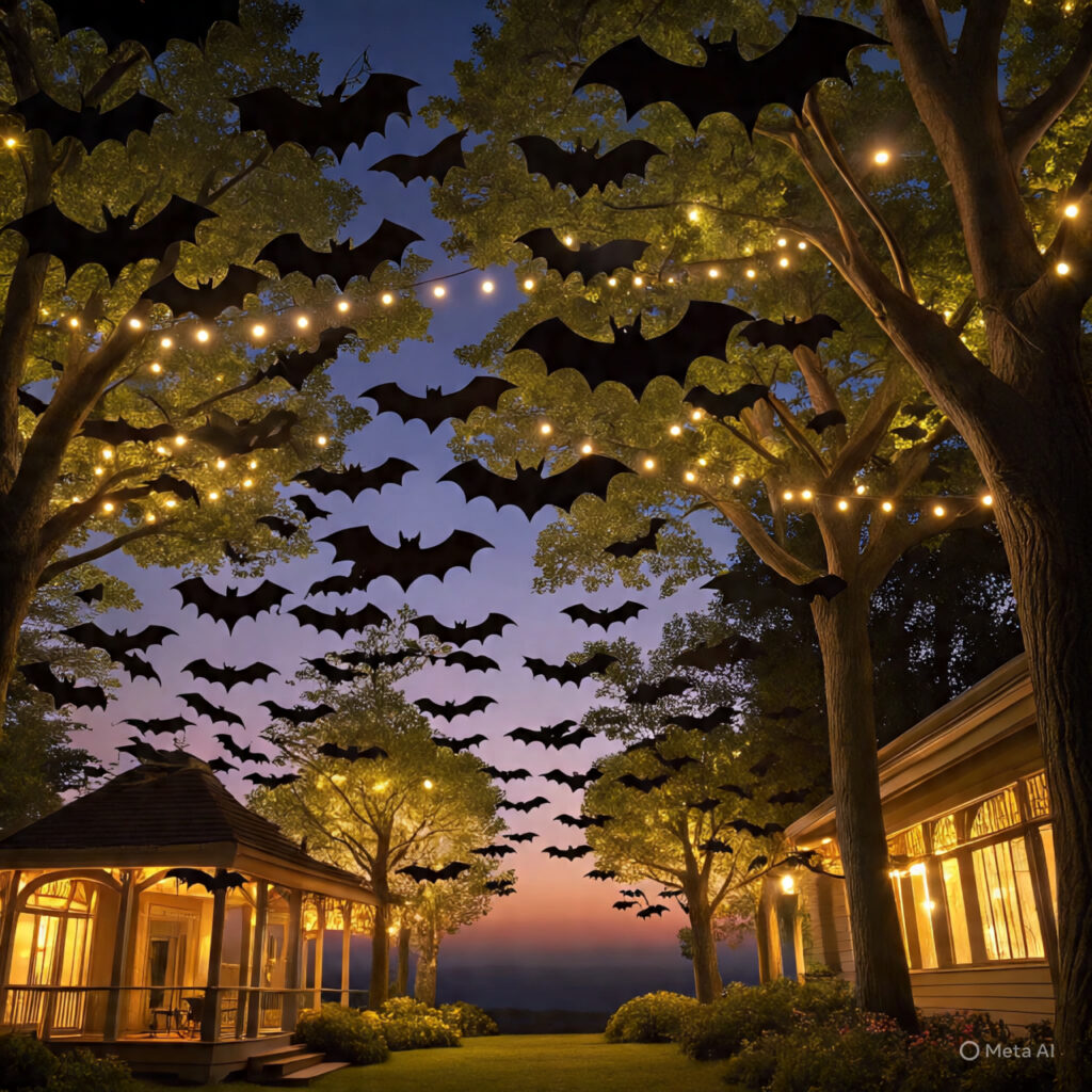 Cut out dozens of bats from black cardstock and hang them from trees, porches, or pergolas for a dramatic garden canopy.