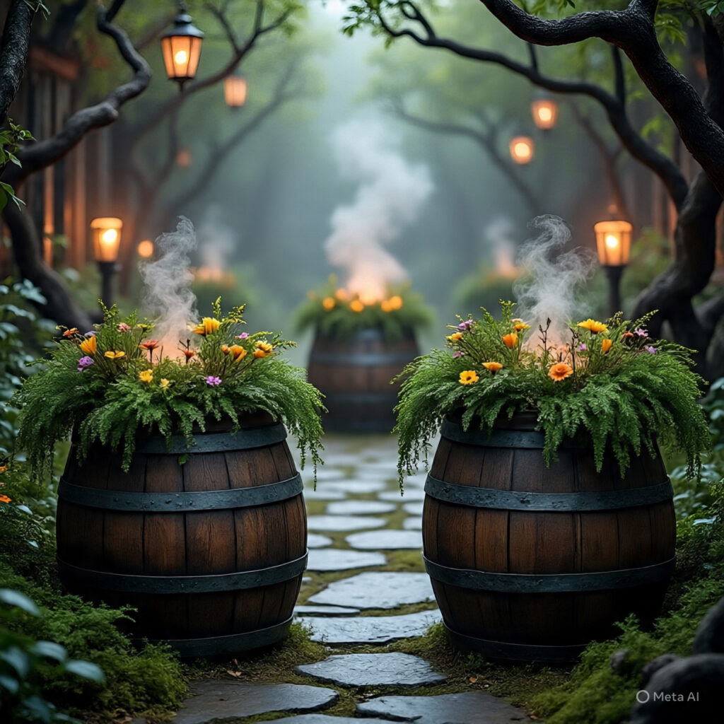 Turn large planters into “witch’s cauldrons.” Fill them with dry ice or fog machines to give the illusion of a bubbling potion brewing right in your garden.