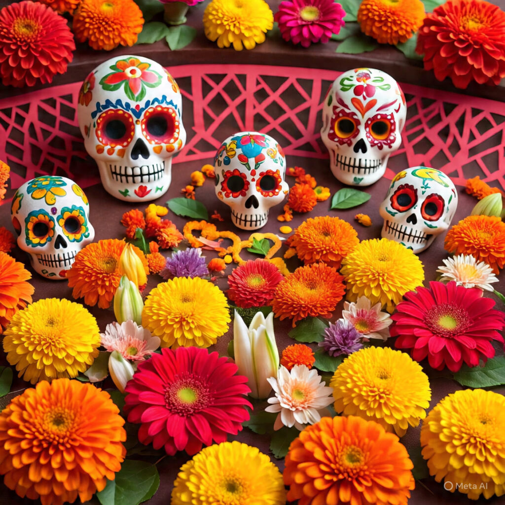 Mix Halloween décor with a cultural twist by adding bright marigolds, colorful skeletons, and sugar-skull decorations for a festive look.