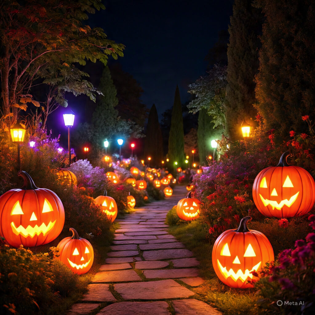 Instead of traditional pumpkins, try LED-lit jack-o’-lanterns with smart bulbs. They can change colors throughout the night, giving your garden a lively, animated feel.