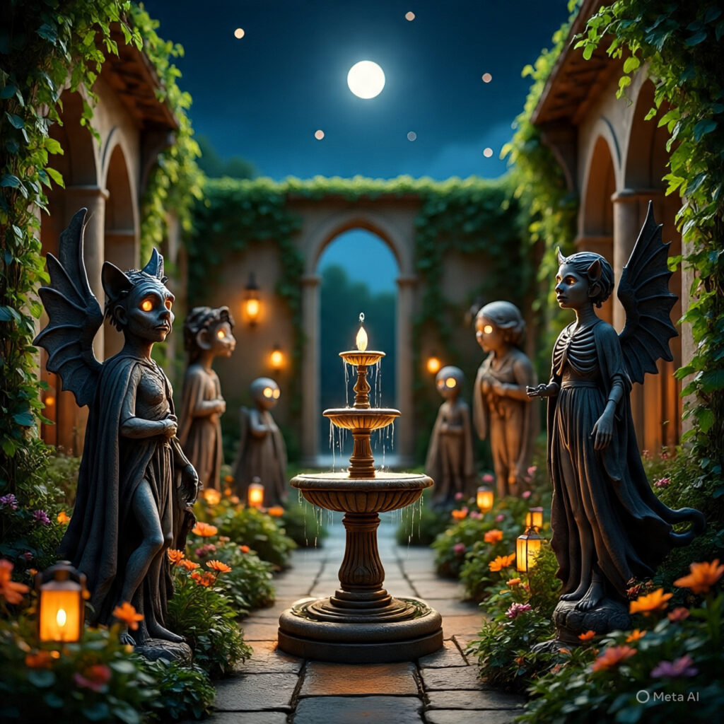 Swap out regular garden gnomes with Halloween-inspired statues—think gargoyles, black cats, or skeletal angels. They instantly set the mood.