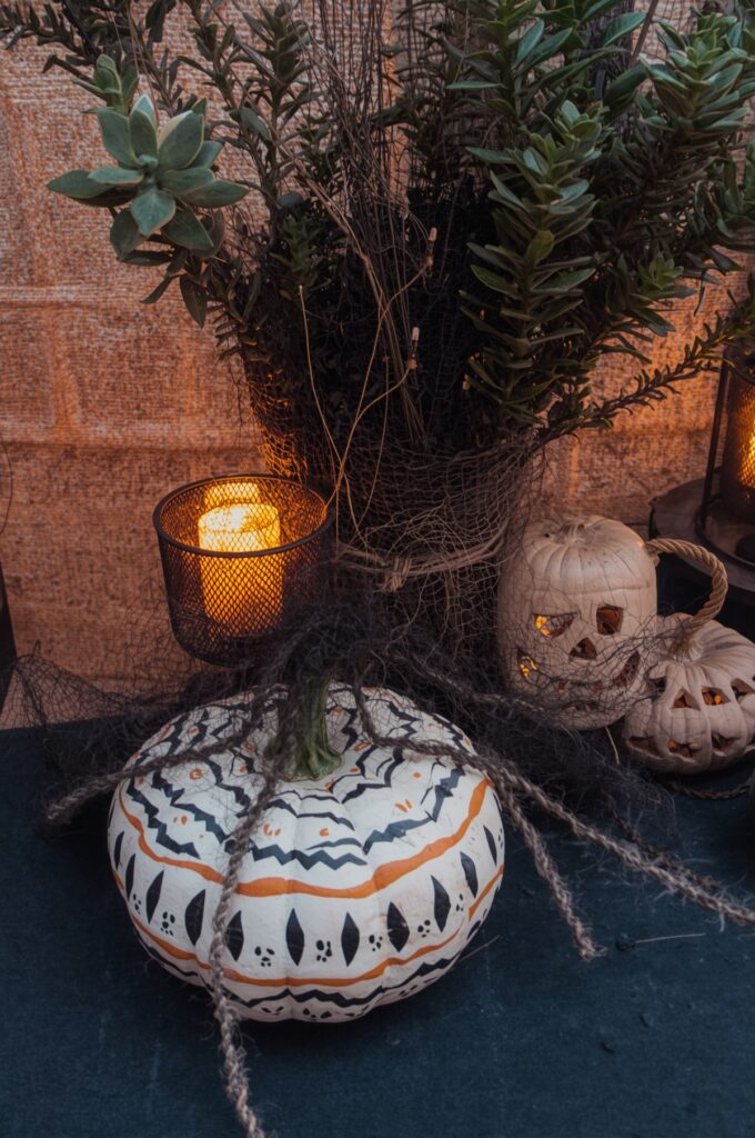 Sustainability continues to trend, even in spooky season. Think pumpkins painted with natural dyes, reusable spooky lights, and upcycled décor. Guests will love that your party is both creepy and green.