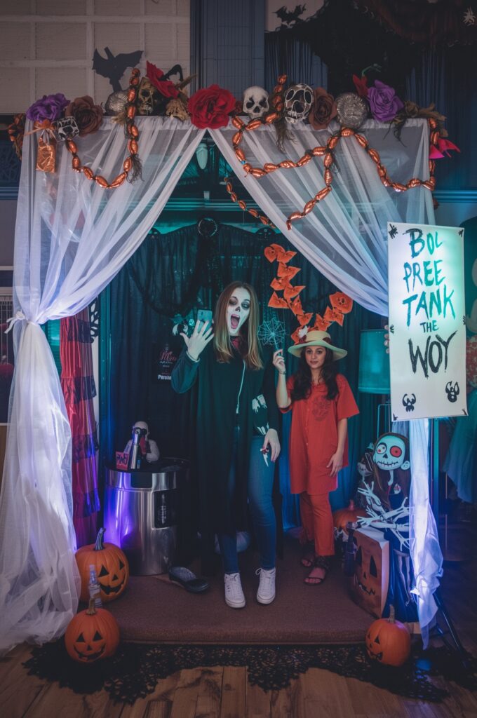 Photo booths remain essential. This year, hosts are creating DIY booths with creepy backdrops, glowing props, and AR filters so guests leave with ghostly selfies.