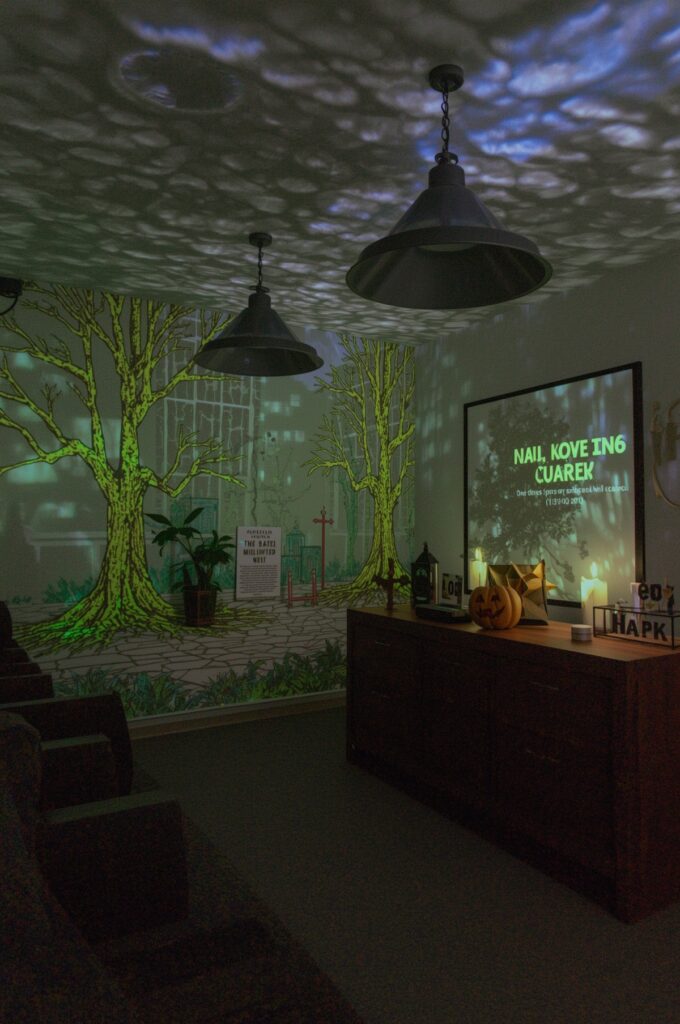 Walls, ceilings, and even floors will transform with projection mapping effects. Imagine a living room turning into a haunted forest or a graveyard in seconds—perfect for Insta-worthy party moments.