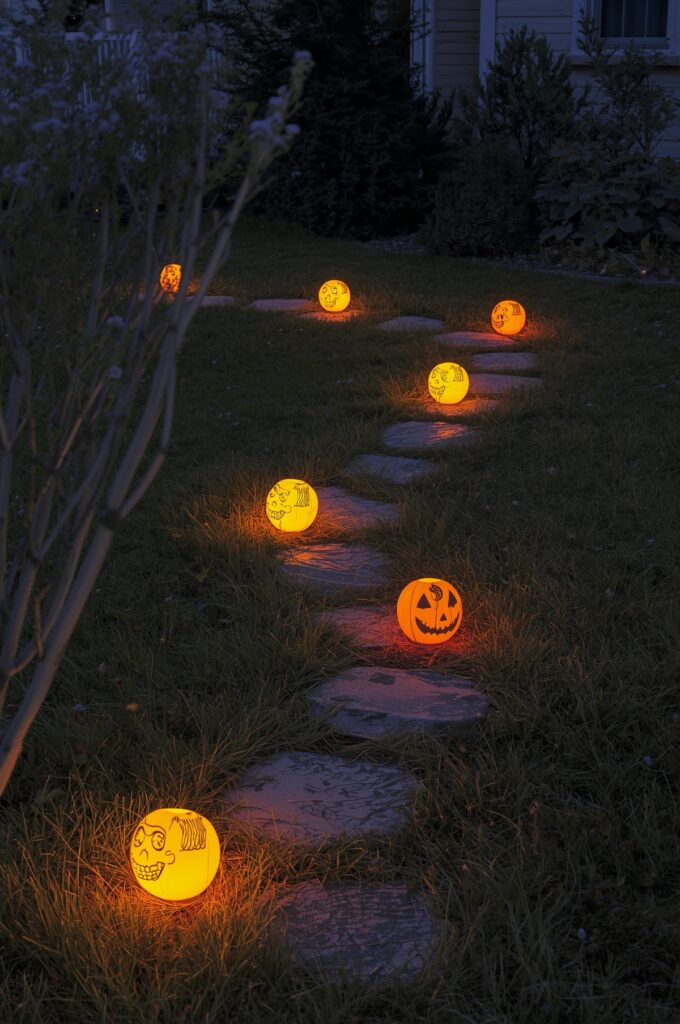Replace your regular pathway lights with lanterns shaped like skulls, pumpkins, or ghosts. Solar-powered options make it eco-friendly and easy to install.