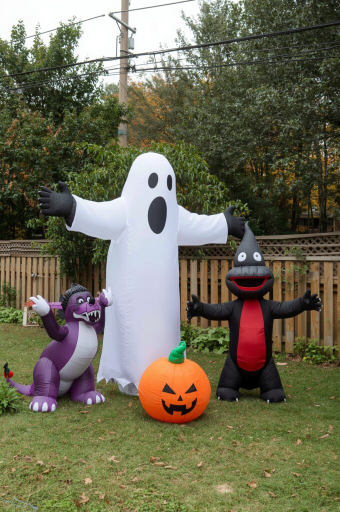 Large inflatables remain a favorite in 2025. Choose towering ghosts, grinning pumpkins, or animated dragons for an easy, high-impact outdoor decoration.