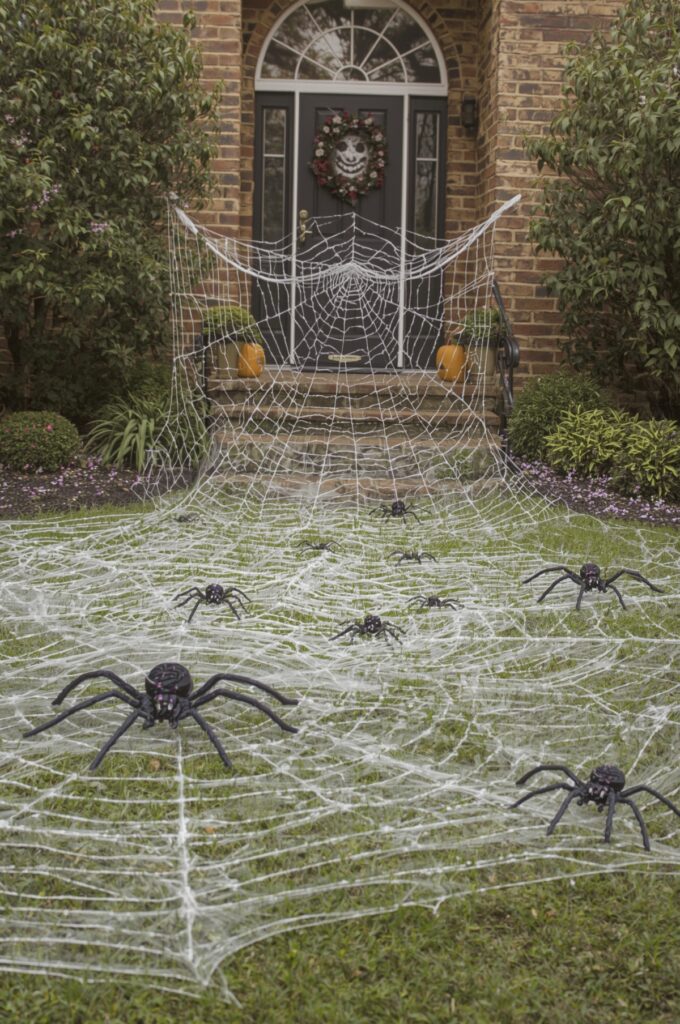 Cover your lawn or shrubs with massive fake spider webs. Add a few oversized black spiders to complete the terrifying look—it’s cheap, easy, and highly dramatic.