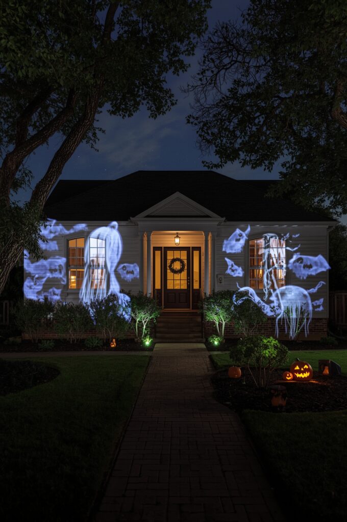 For a modern 2025 touch, try Halloween projection mapping. Project ghostly scenes, bats, or creepy crawlies onto your house walls or trees for an immersive, cinematic effect.