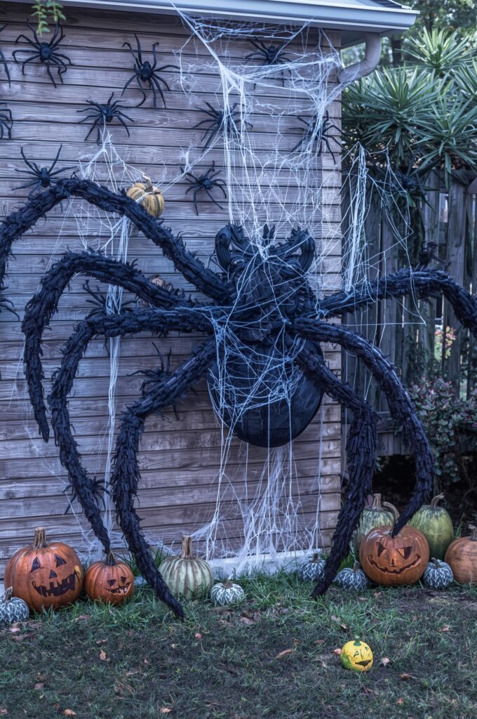 Large plastic spiders crawling across your walls and webs stretched across bushes create a classic but powerful Halloween effect. A giant spider centerpiece instantly makes your yard look haunting.
