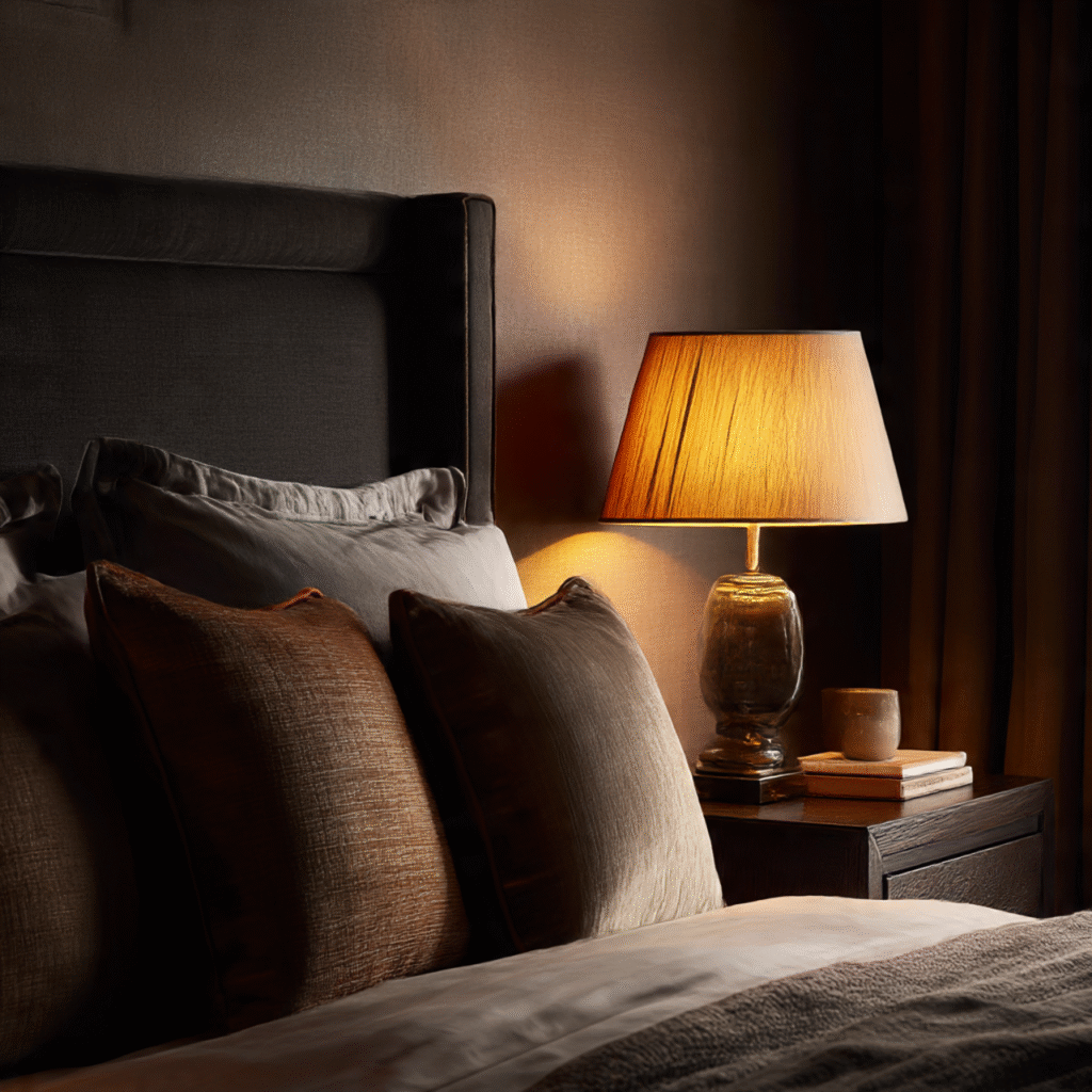 Hotels use lighting strategically. Mix warm bedside lamps, pendant lights, and soft LED strips for that dreamy ambiance.