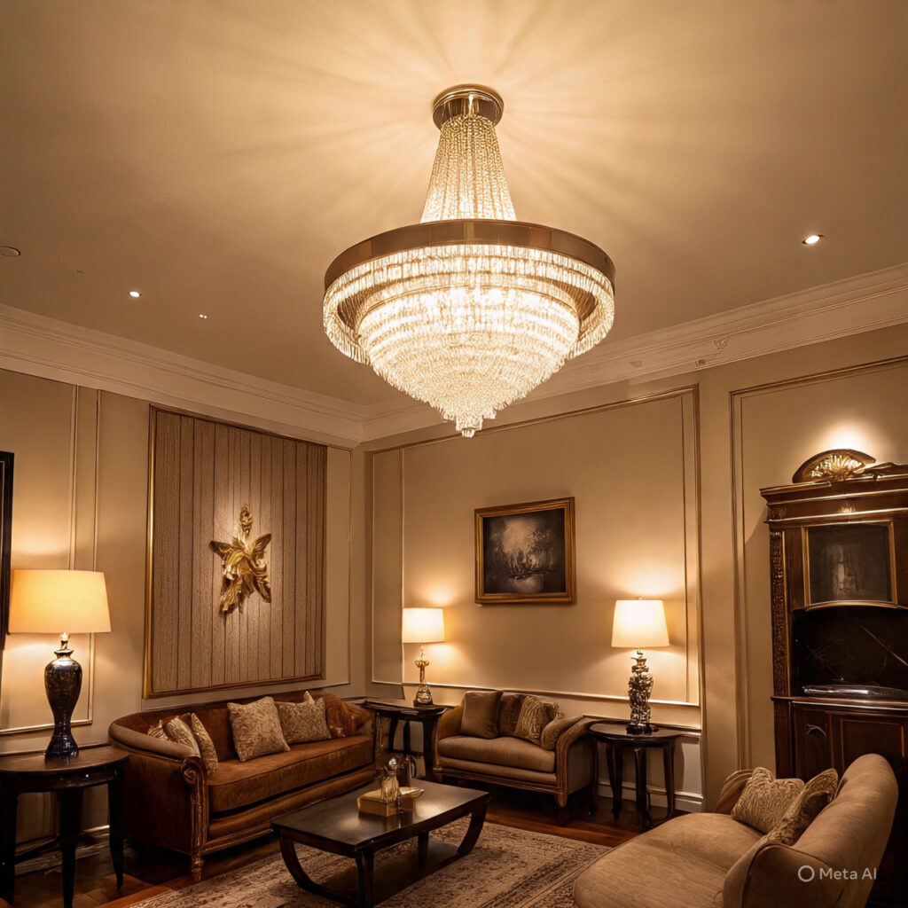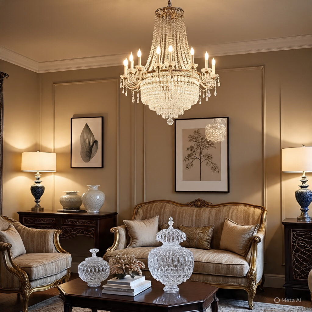 Nothing says glamour quite like a dazzling chandelier. Whether crystal, gold-plated, or modern art-inspired, chandeliers add instant drama and elegance to living rooms, dining spaces, or entryways.