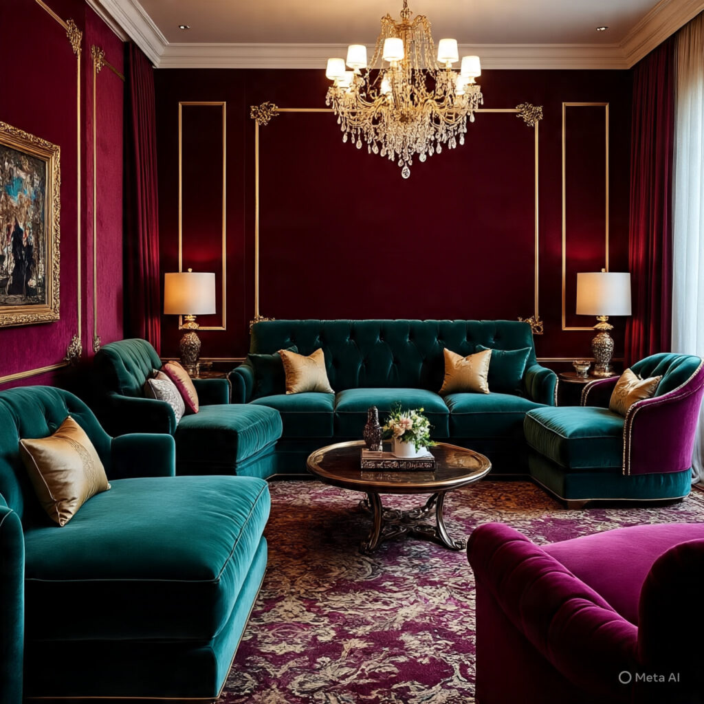 Velvet is a fabric synonymous with luxury. Incorporate velvet sofas, armchairs, or cushions to give your home a plush, high-end feel. Jewel tones like emerald, sapphire, and ruby make a bold statement.