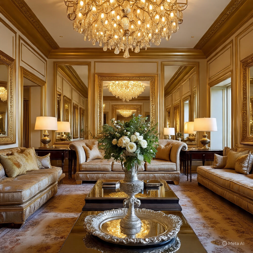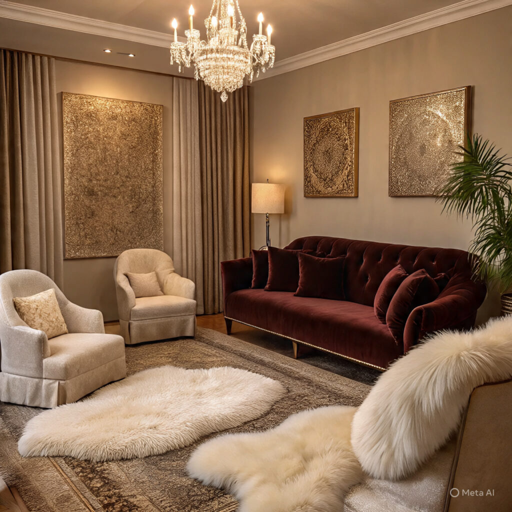 Gold, brass, and silver accents are essential in glamorous interiors. Consider gold-framed mirrors, brass light fixtures, or silver decorative trays to elevate your space.