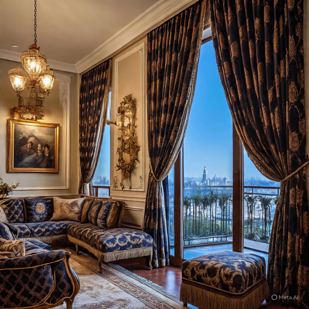 Floor-to-ceiling curtains in rich fabrics like silk or velvet instantly transform a room into a glamorous haven. Choose deep tones or neutral metallic shades for maximum effect.