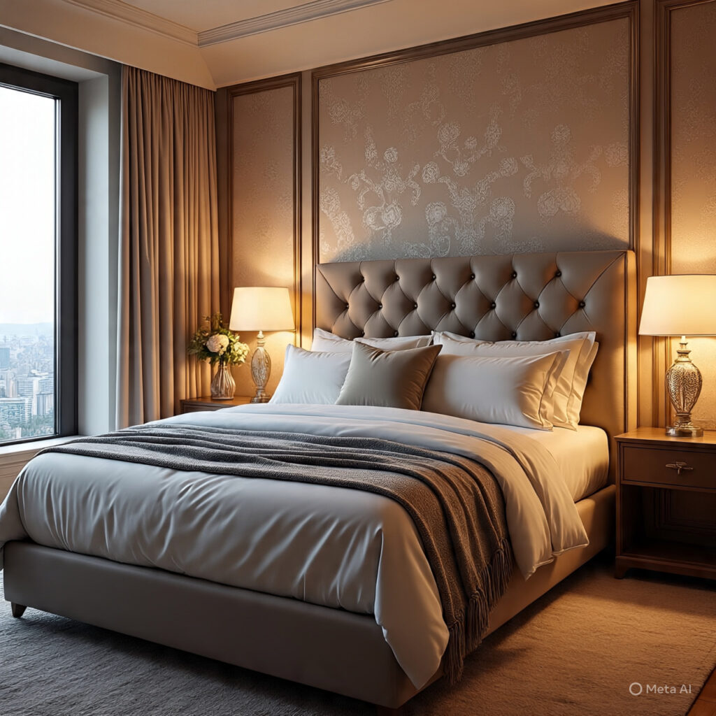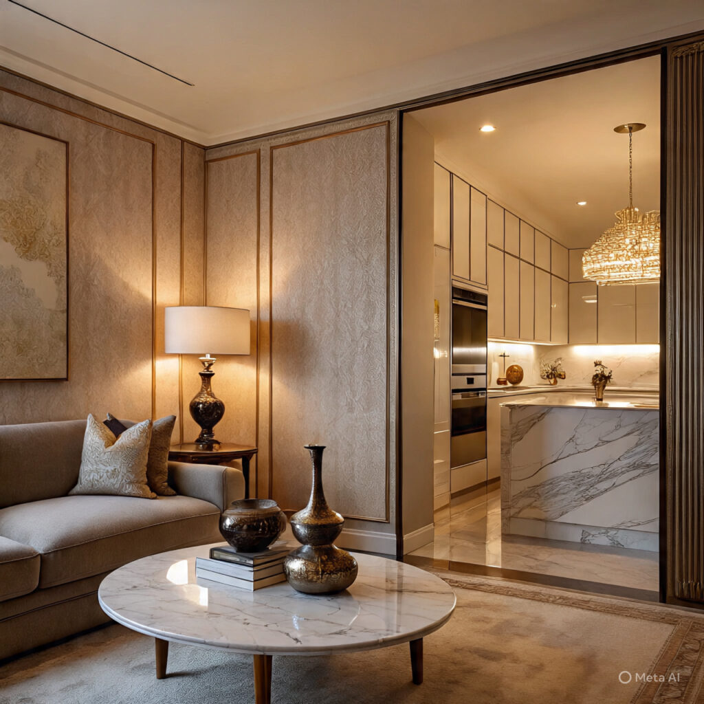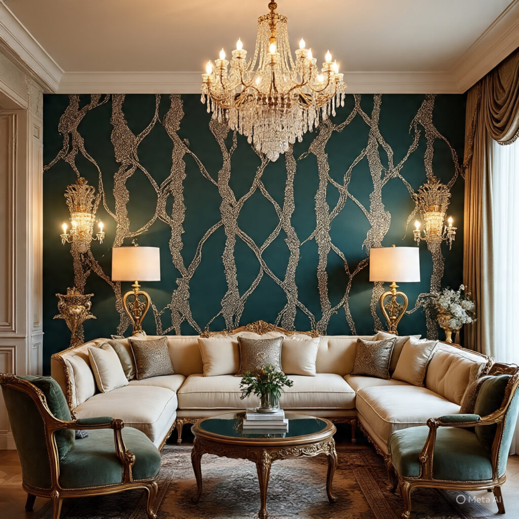 Wallpaper with metallic patterns, bold textures, or elegant prints can add flair to your walls. An accent wall with a glamorous design serves as the perfect backdrop for luxurious furniture.