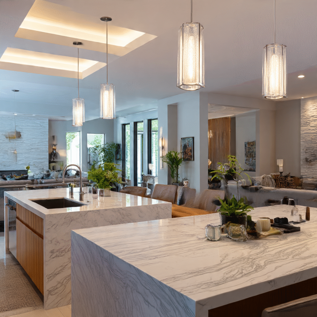For large homes, two islands can serve different purposes — one for prep and another for dining or display. It’s luxury at its finest.