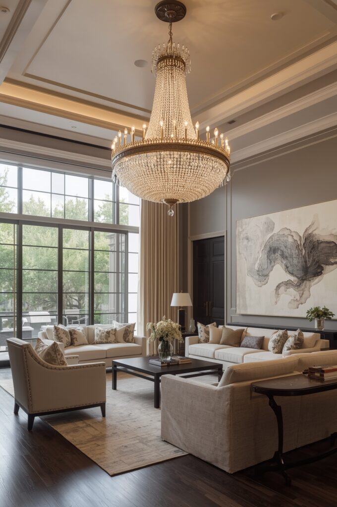 Why: A bold chandelier transforms the ceiling into a design feature, adding glamour and grandeur.
