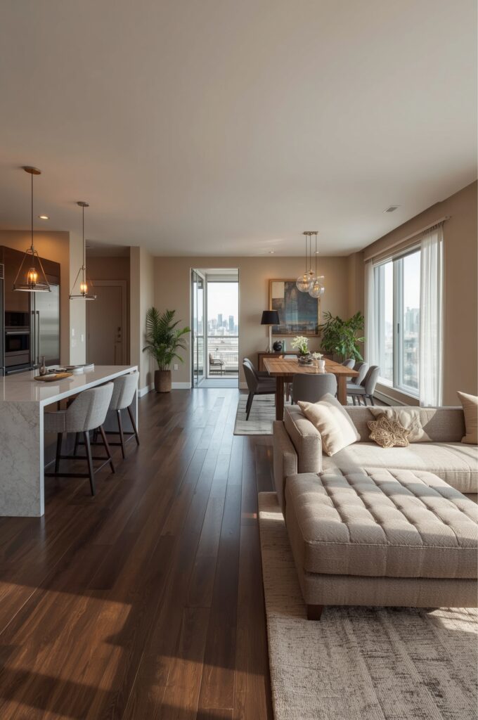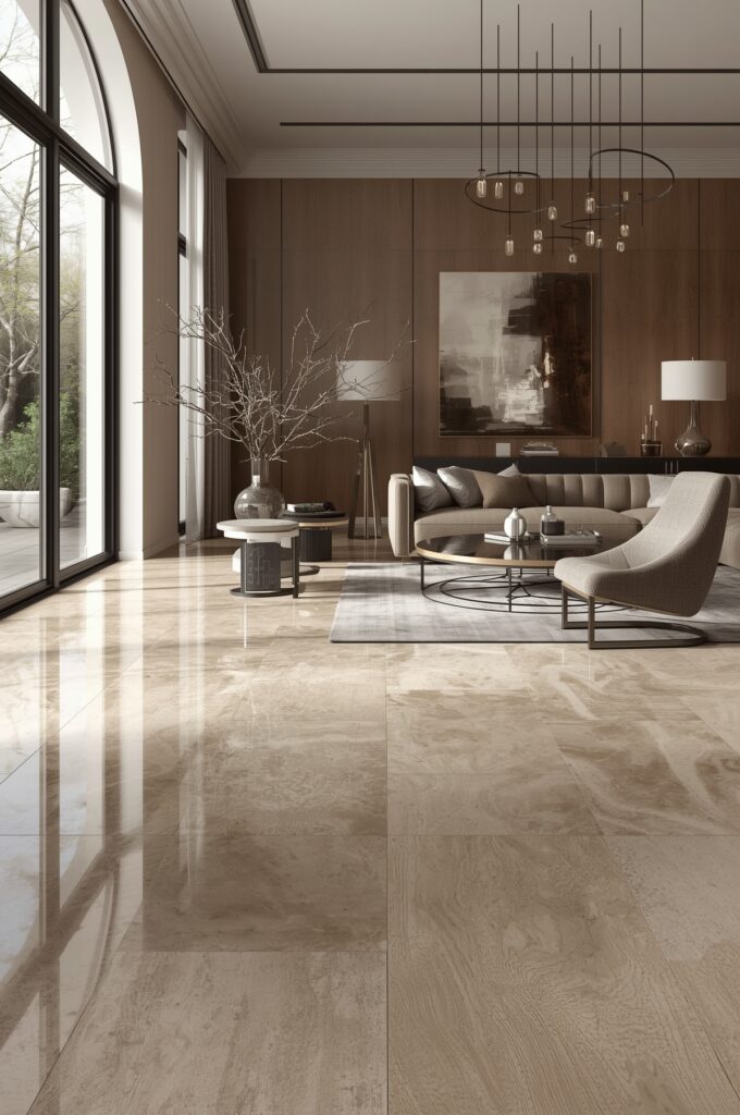 High-quality flooring materials like marble, hardwood, or polished concrete.