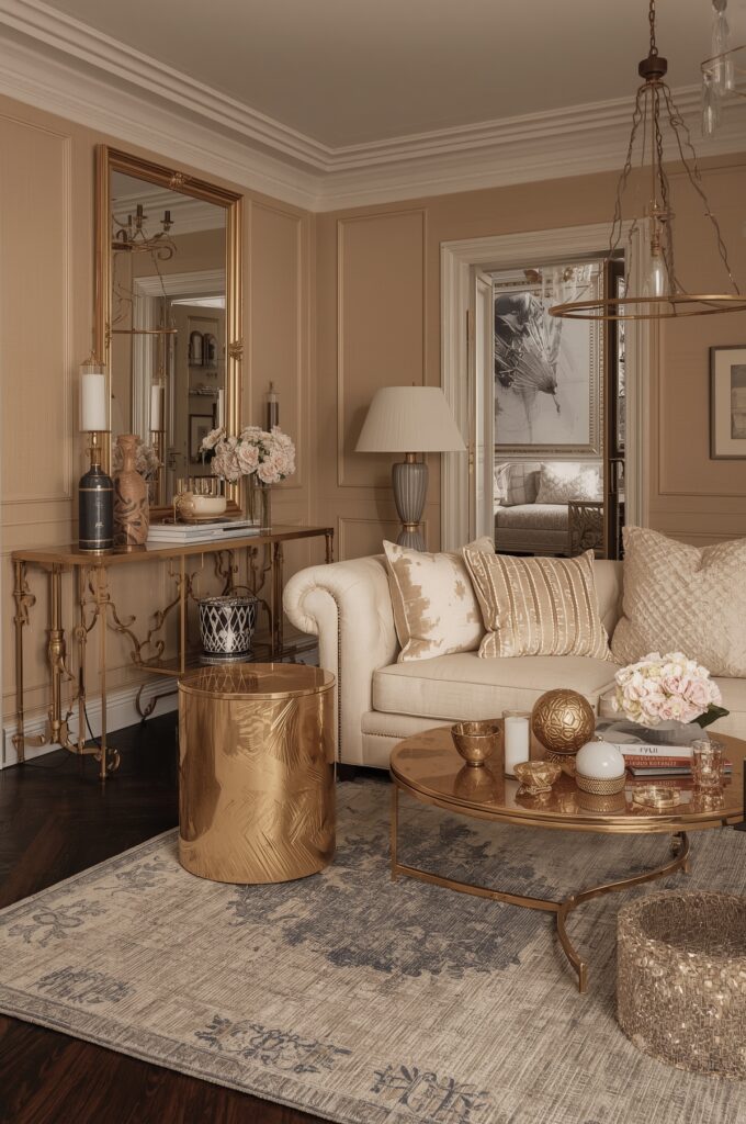 Why: Gold accents symbolize wealth and add a refined warmth to neutral color palettes.