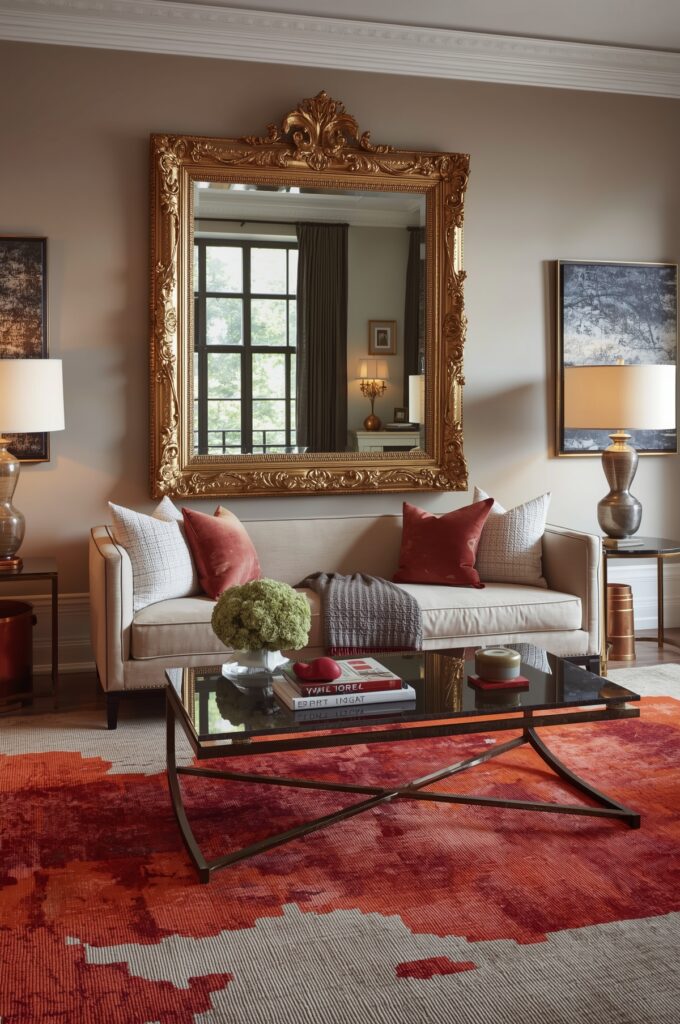 Why: Mirrors add glamour while reflecting light, making rooms appear larger and brighter.
