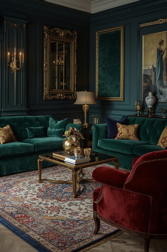 Plush velvet sofas, chairs, or ottomans in jewel tones.