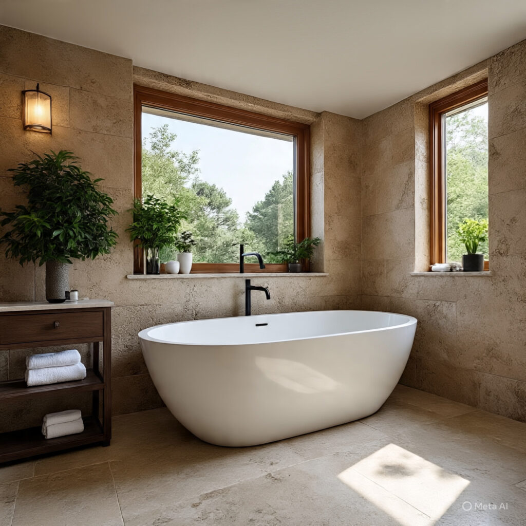 Stone walls add texture, depth, and richness to your bathroom. Travertine, slate, or limestone walls can transform your bathroom into a tranquil retreat.