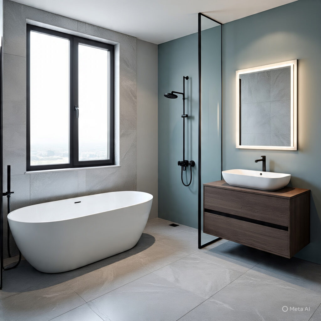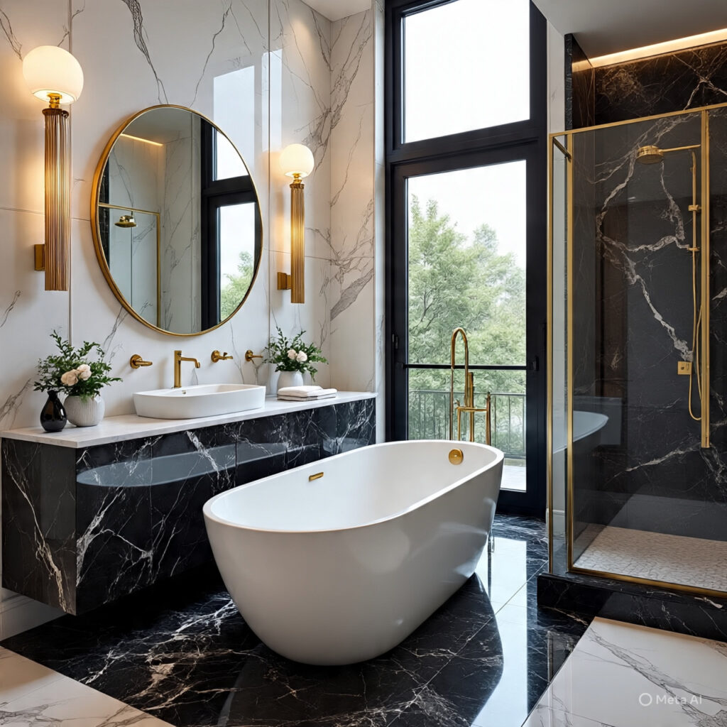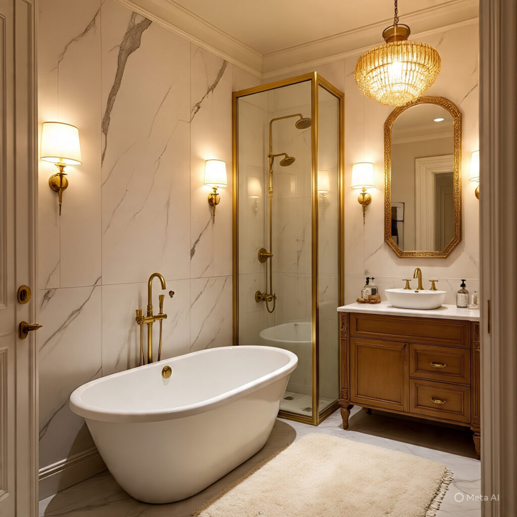 Metallic finishes like brushed gold and brass instantly elevate your bathroom. Whether in faucets, handles, or lighting, they bring warmth and elegance against neutral palettes.