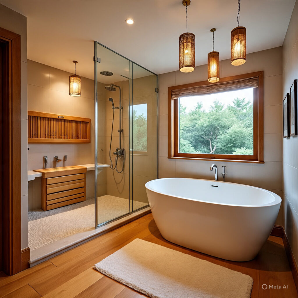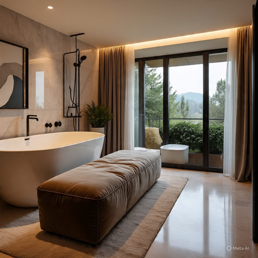 Natural light adds openness and freshness. Skylights or floor-to-ceiling windows invite daylight while maintaining privacy with smart blinds.