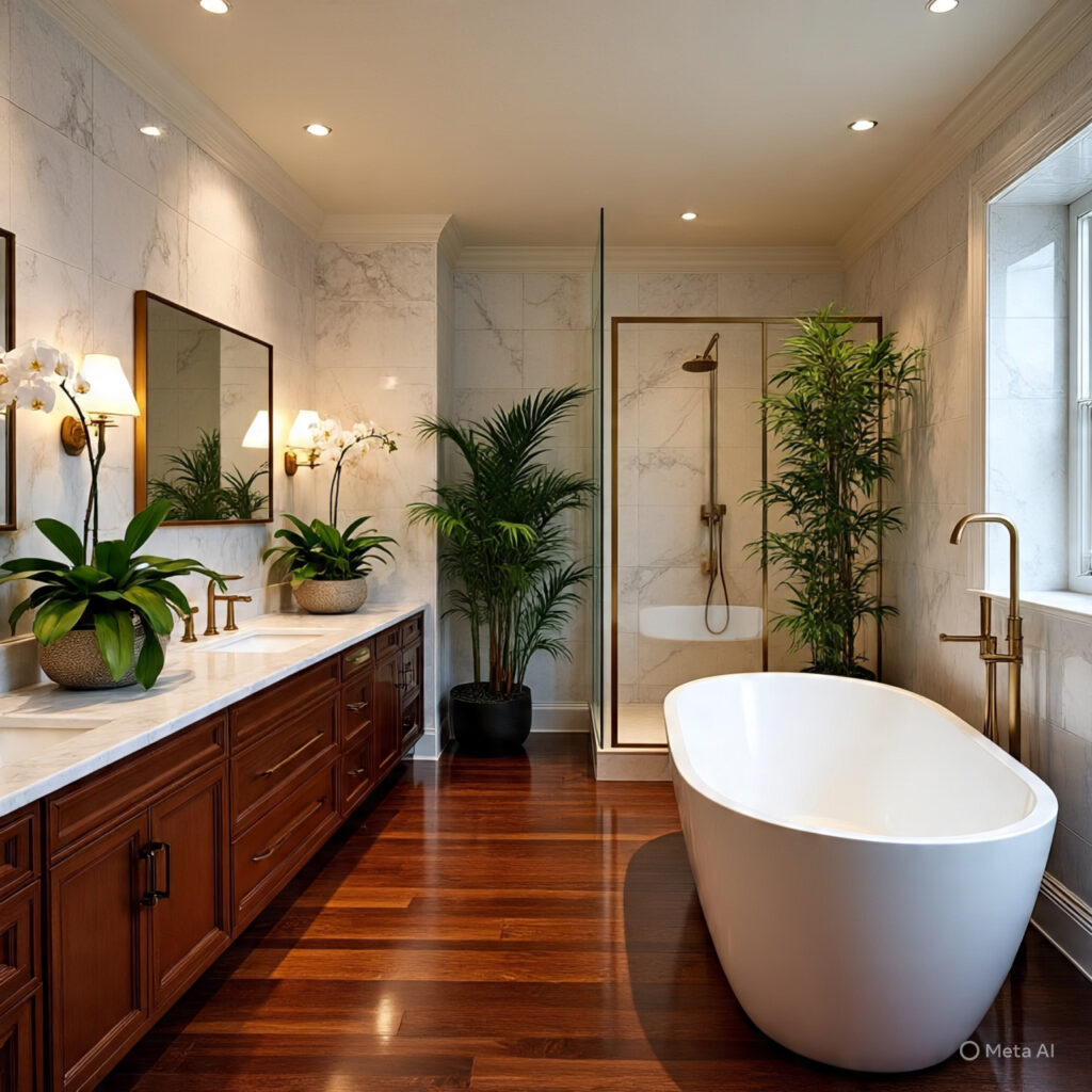 Greenery brings freshness into the bathroom. Orchids, bamboo, or ferns thrive in humid environments and add organic luxury to the space.