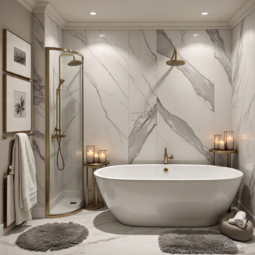Luxury is also about personalization. Add scented candles, designer bath mats, or curated artwork that reflects your taste and makes the bathroom feel uniquely yours.