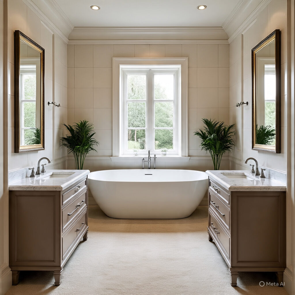 Luxury bathrooms often lean toward soothing neutral tones like beige, white, and gray. These palettes create calmness while allowing features like tubs or fixtures to stand out.