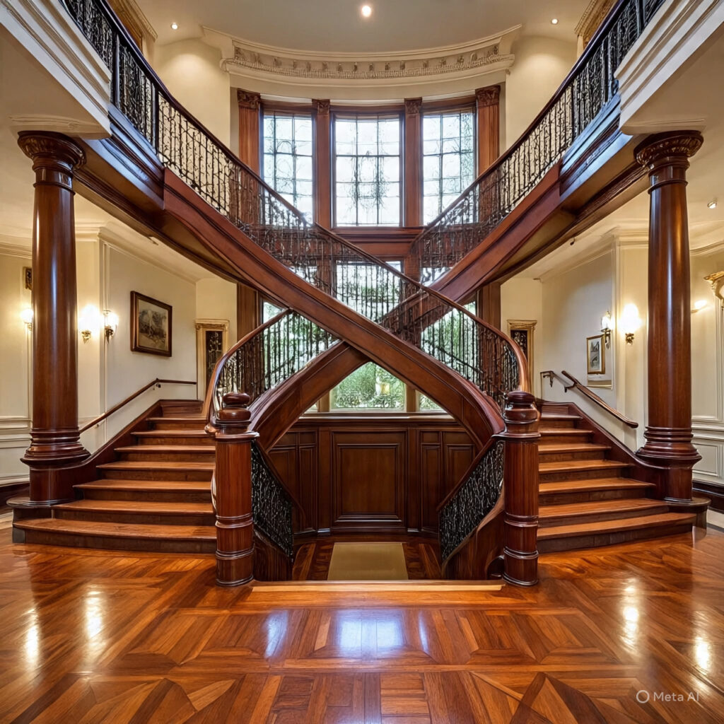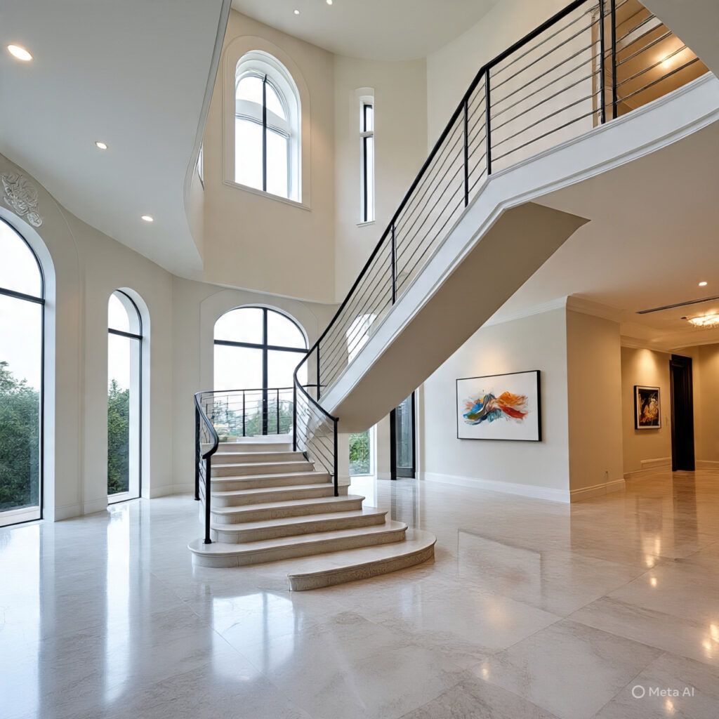 Floating staircases are modern marvels. Designed with hidden supports, they create an illusion of weightlessness that pairs beautifully with luxury foyers.