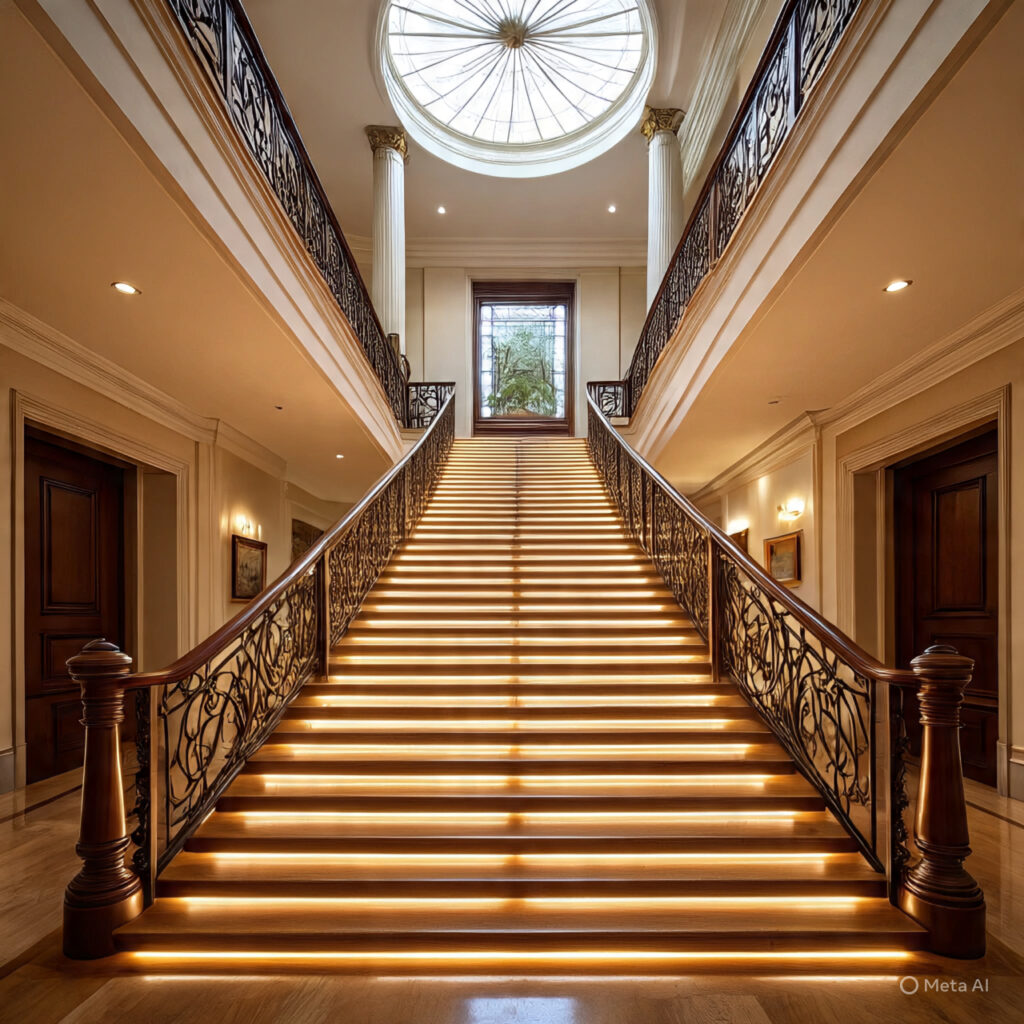 Lighting embedded under staircase steps gives foyers a futuristic, luxury feel while ensuring safety and highlighting design details.