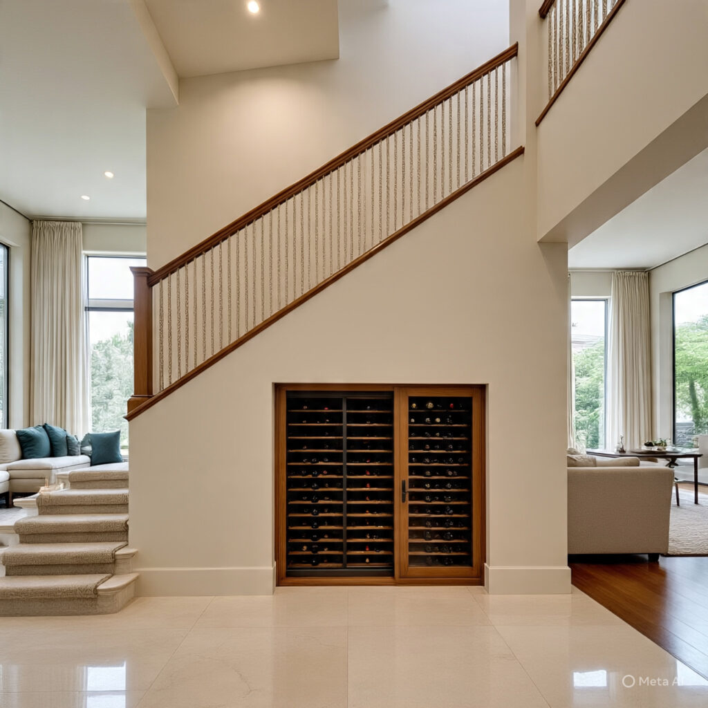 Luxury foyers can be practical too. Staircases with hidden drawers or under-stair wine cellars add utility while keeping the design chic.