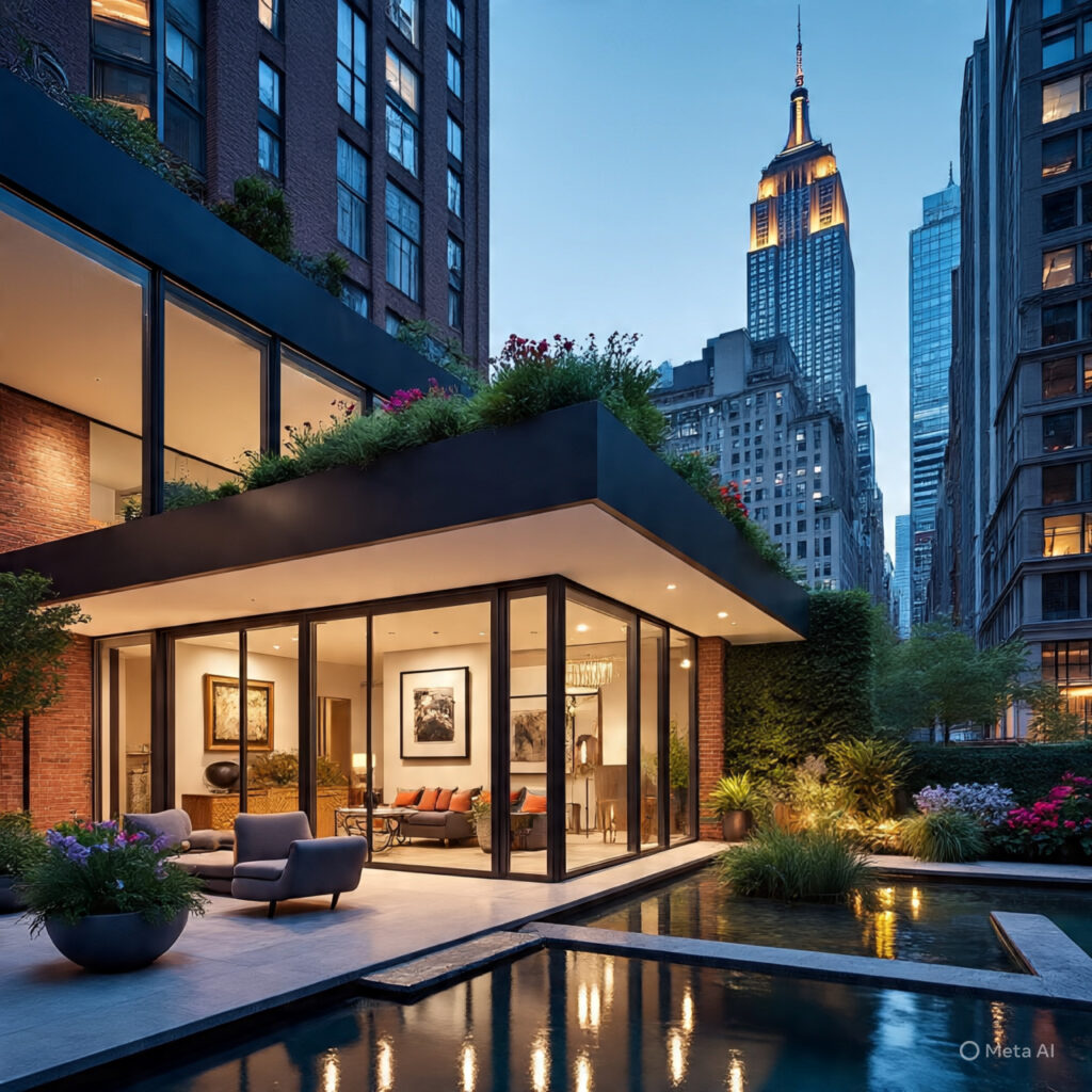 Located in Manhattan, this urban luxury home redefines city living. It blends industrial-chic design, integration with contemporary art, and a rooftop garden oasis.