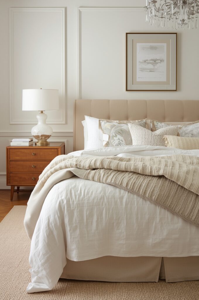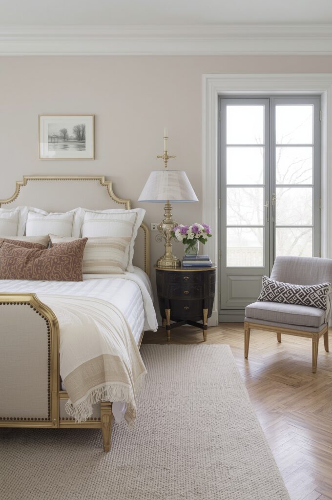 Use crisp linens, quilted blankets, and multiple throw pillows to layer textures. Soft cottons and silks work beautifully for French-inspired comfort.