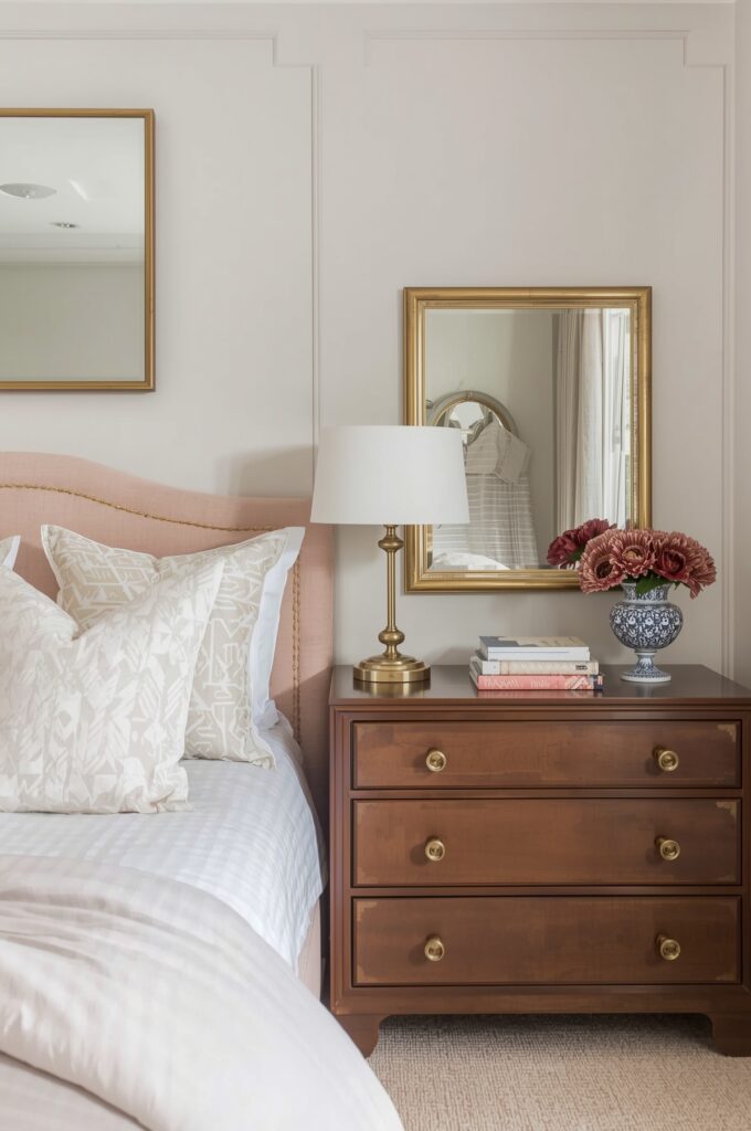 Why it works: A single vintage dresser can ground the entire design in timeless elegance.