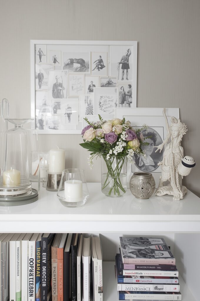 Add books, candles, or personal keepsakes styled elegantly. French design is about curated personal expression.
