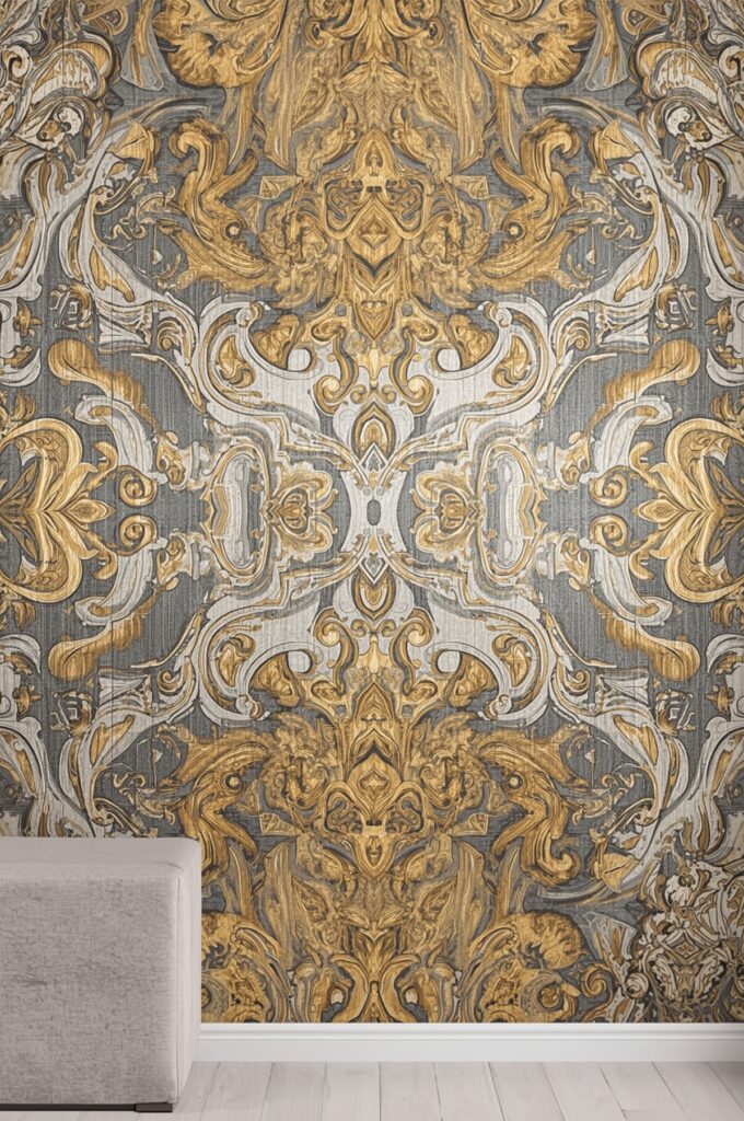 Gold, silver, or copper-toned murals highlight luxury and sophistication, ideal for accent walls.