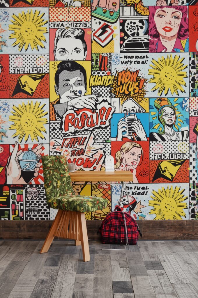 Inspired by bold colors, comic-style art, and retro designs, pop art murals make walls fun and playful.
