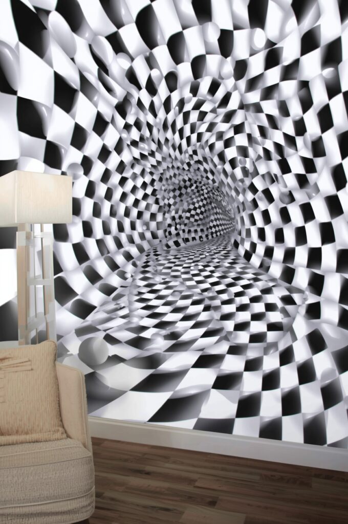 Optical illusions and 3D effects add depth, making small rooms appear larger and giving interiors a futuristic vibe.