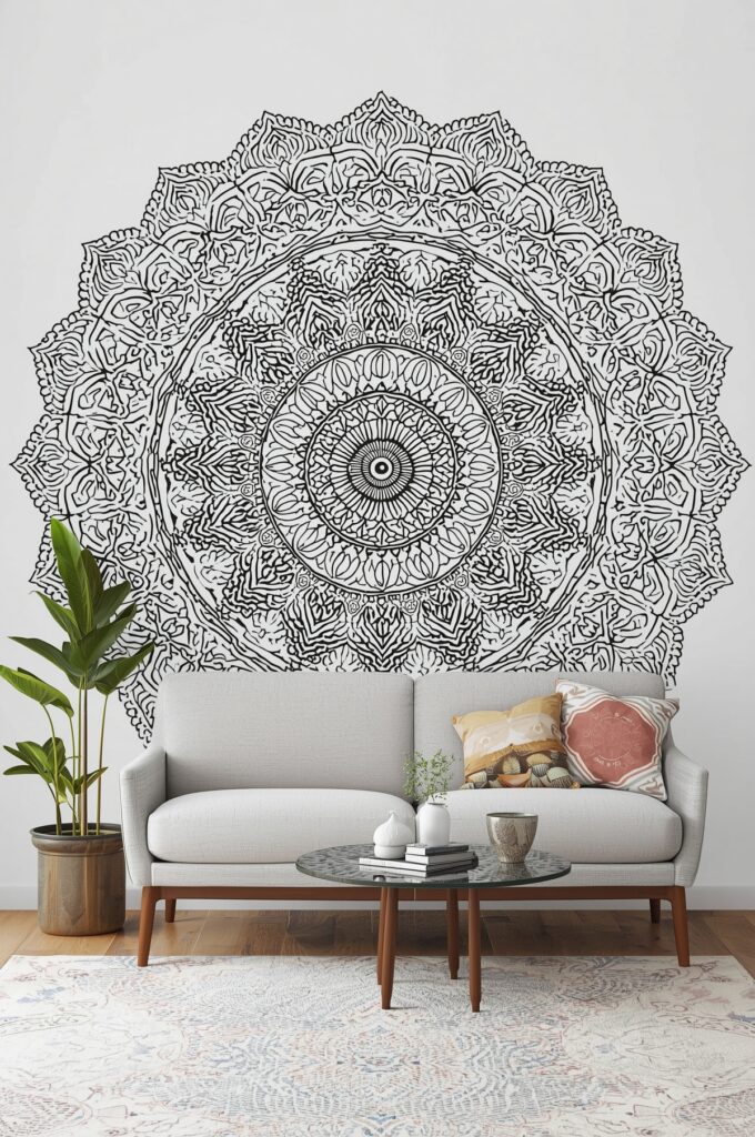 Intricate mandala designs or spiritual symbols add harmony, focus, and elegance to meditation or yoga spaces.