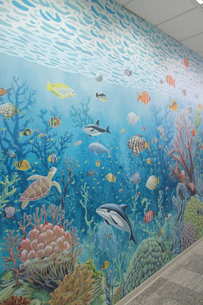 Marine life, coral reefs, and ocean blues transform spaces into tranquil underwater havens.