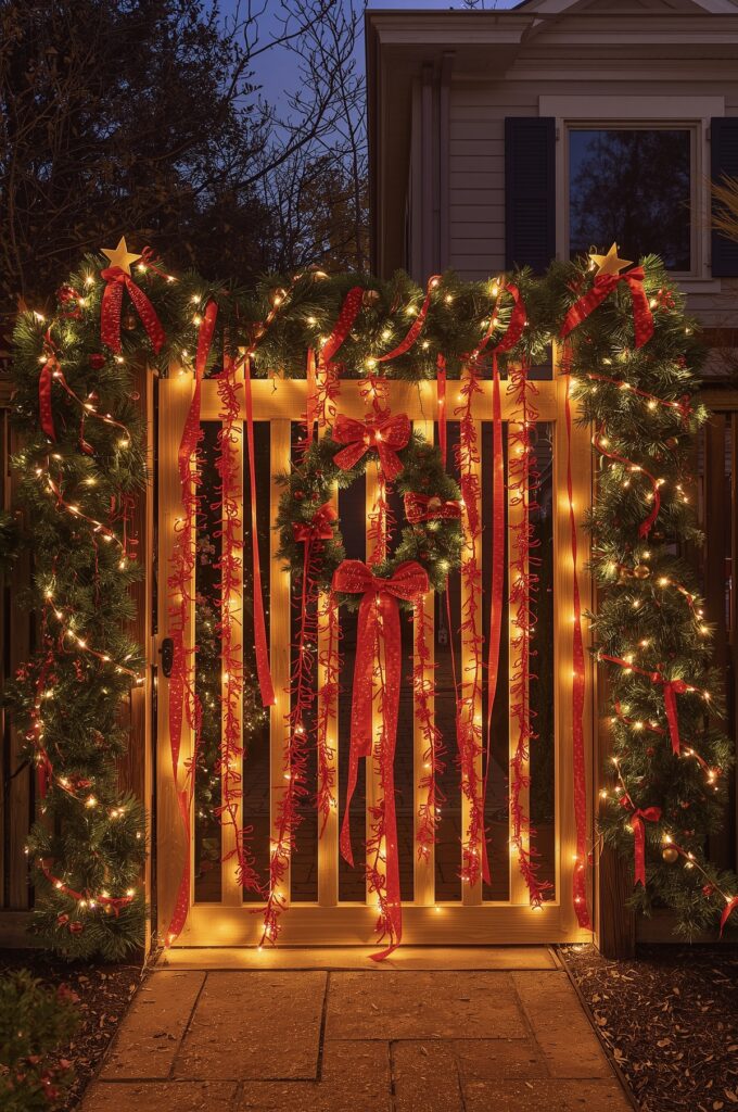 If you have a gate or fence, wrap it with lights, tinsel, and ribbons. Hanging small wreaths or stars at intervals can turn even a plain fence into a Christmas masterpiece.